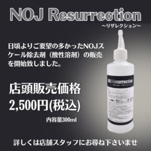 NOJリザレクションはNOJでメンテナンスの際に使用している溶剤を一般の方でも使いやすくした商品となります。