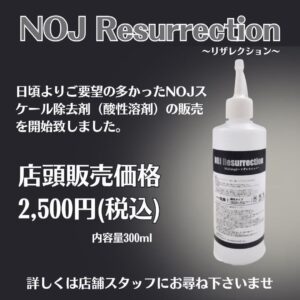 NOJリザレクションはNOJでメンテナンスの際に使用している溶剤を一般の方でも使いやすくした商品となります。